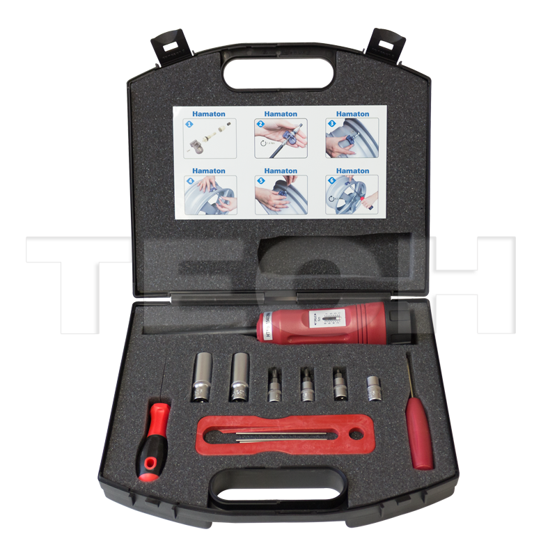 This TPMS tool kit comes complete with:- Calibrated torque tool including: